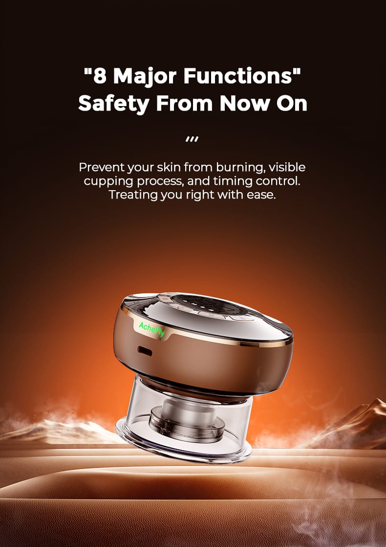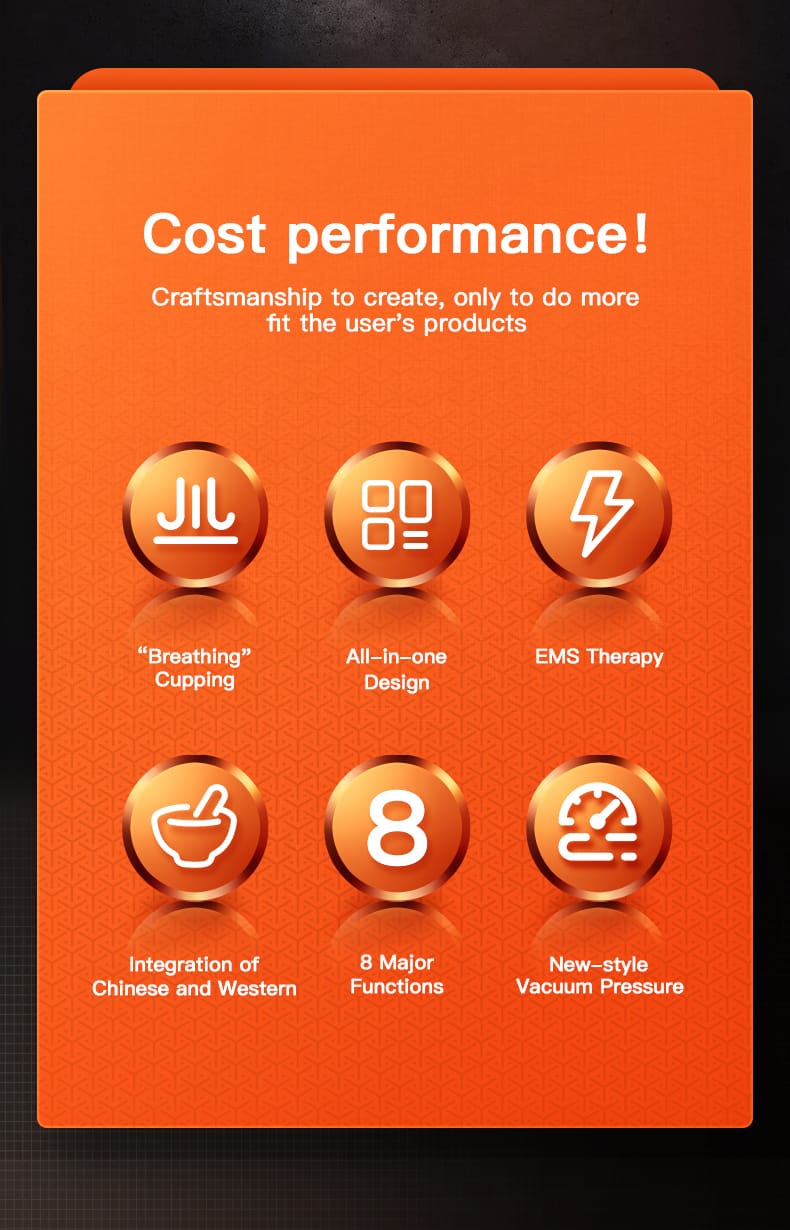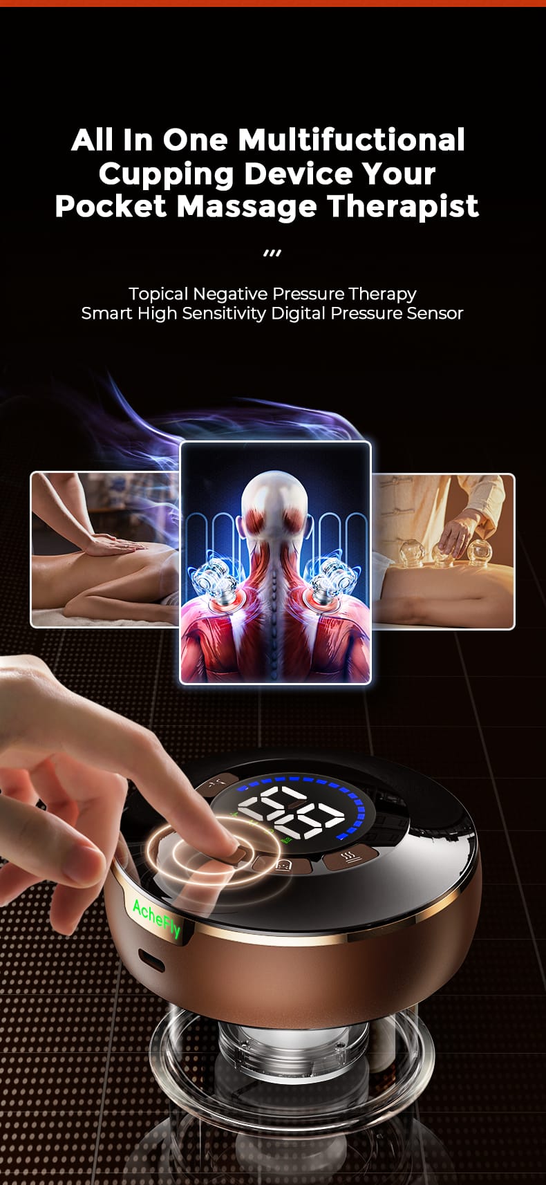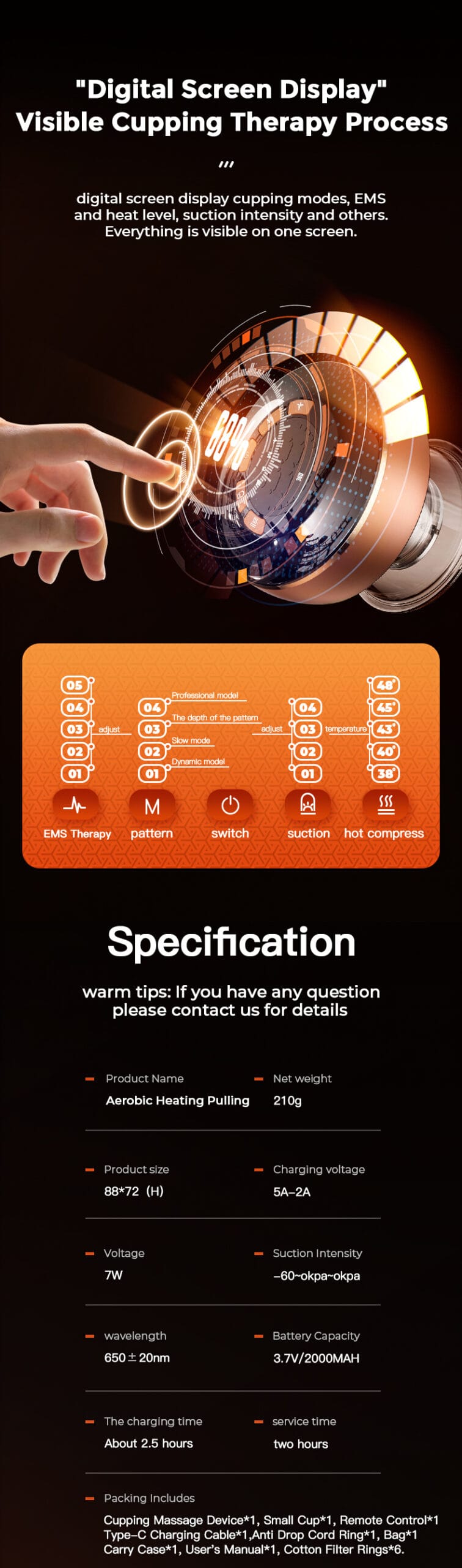 Combines cupping, Gua Sha, kneading massage, electroacupuncture, EMS therapy, and red light therapy for holistic wellness. - Digital Screen Display: