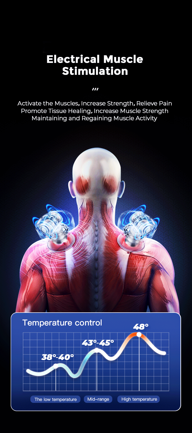 Adjustable vacuum pressure (-60 to 0kPa) for targeted treatment of different muscle groups. - Advanced Heat Therapy: